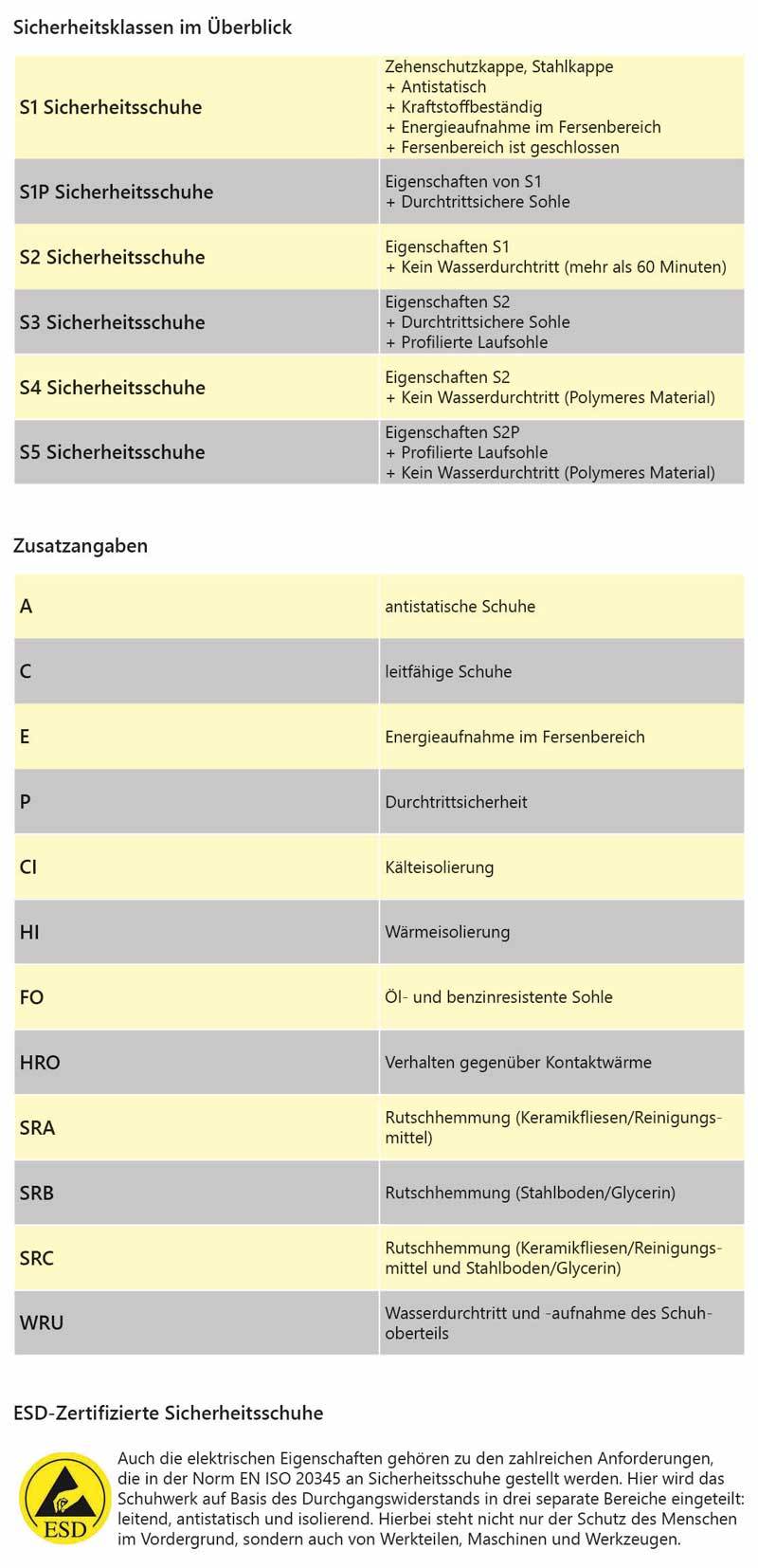 Was bedeutet bei Sicherheitsschuhen S1 S2 S3 usw.?