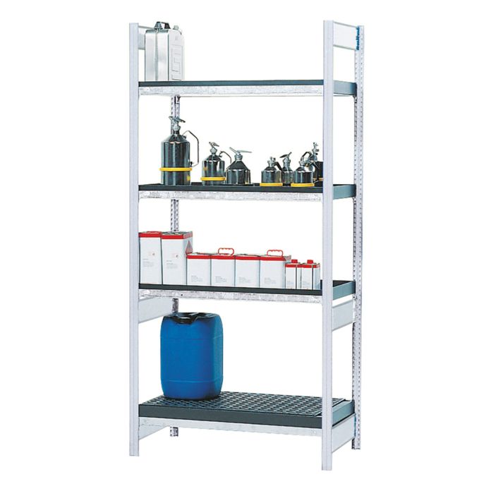 Das Grundregal aus Stahl ermöglicht die sichere und übersichtliche Lagerung von Chemikalien oderReinigungsmitteln. Mit verzinktem Rahmen, höhenverstellbaren Lagerebenen und vier beständigen PE-Auffangwannen bietet es eine robuste Lösung für den professionellen Einsatz.