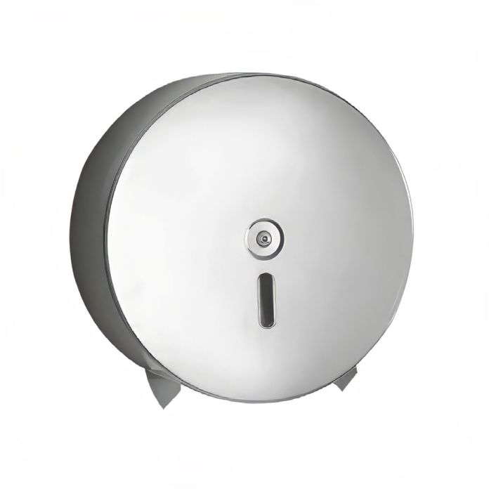 Robuster Papierrollenspender aus Edelstahl für Jumbo-Rollen.